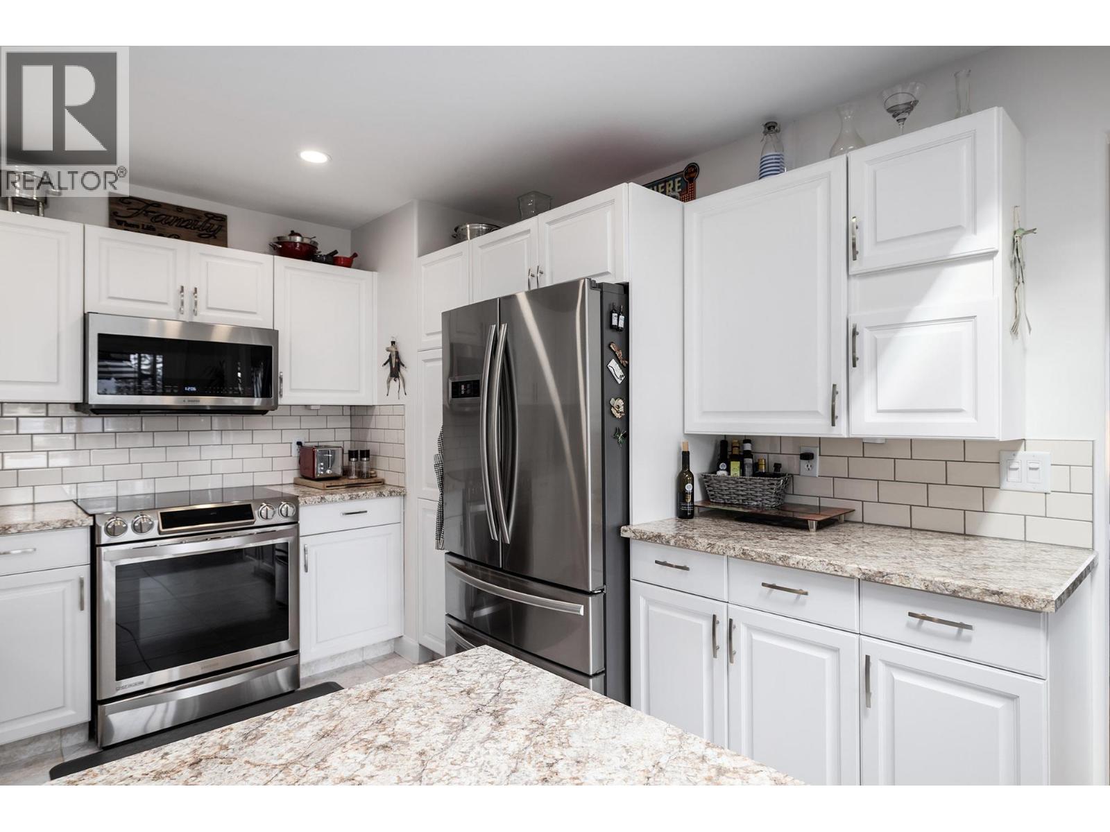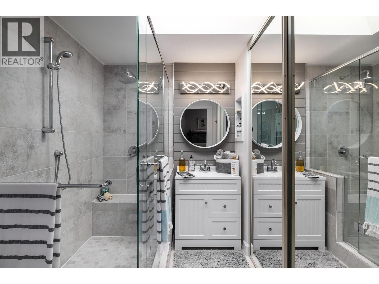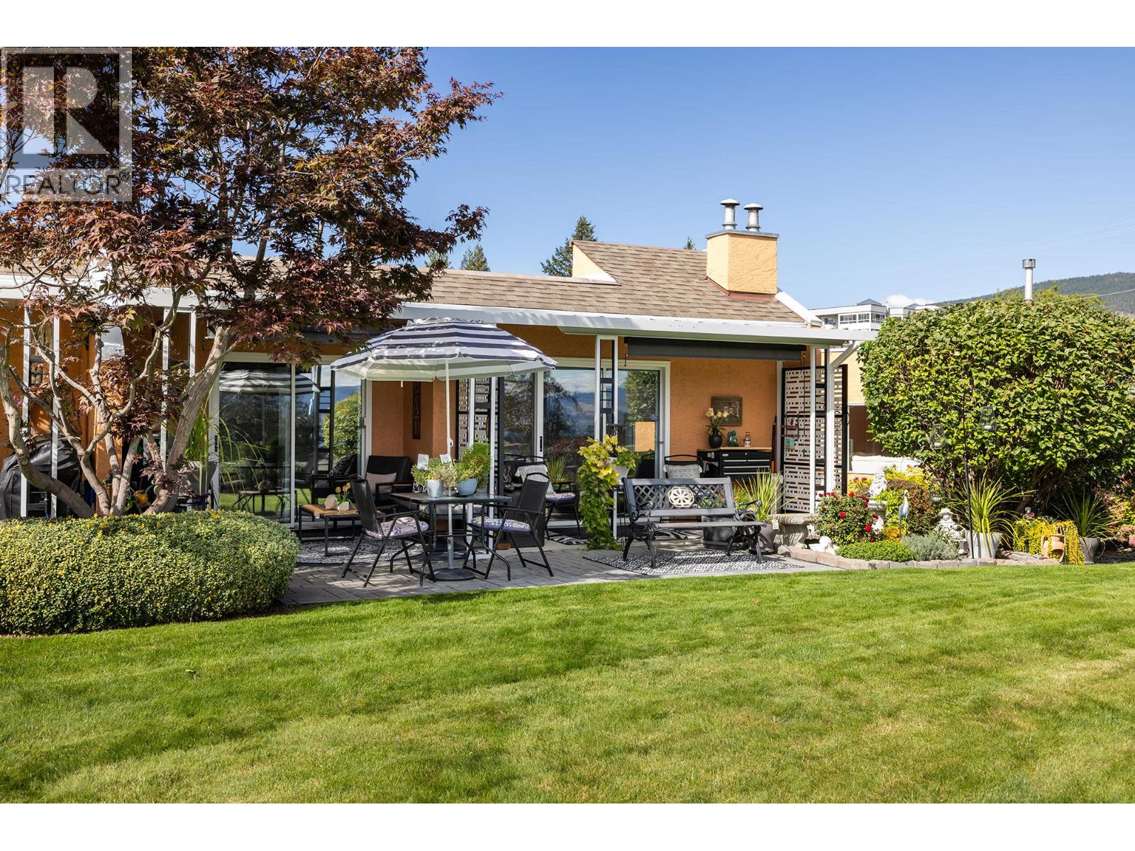 Immaculate FREEHOLD Bare Land Strata semi-detached duplex with Lake and Mountain Views and leisure gardens 55+. Fully renovated with 2 primary suites, featuring upgraded crown moldings, hardwood & vinyl flooring, and 3 skylights. The layout includes a spacious eat-in kitchen with SS appliances, roll-out cabinetry, and loads of storage. Enjoy the warmth of two gas fireplaces and ductless A/C. The strata covers heat, hot water & gas for fireplaces. Additional highlights are the extra large patio, garage, and proximity to amenities, including the beach and rec center. This property boasts shiplap details in all three bathrooms, radiant baseboard heat. Electricity only $56/month, Experience elegance and comfort in this gem. On;y one owner must be 55yrs+. (id:4069)