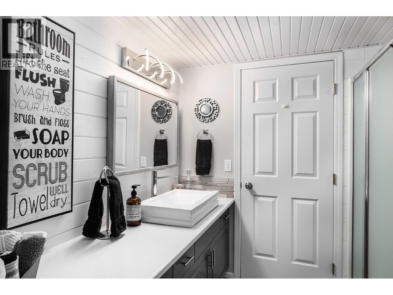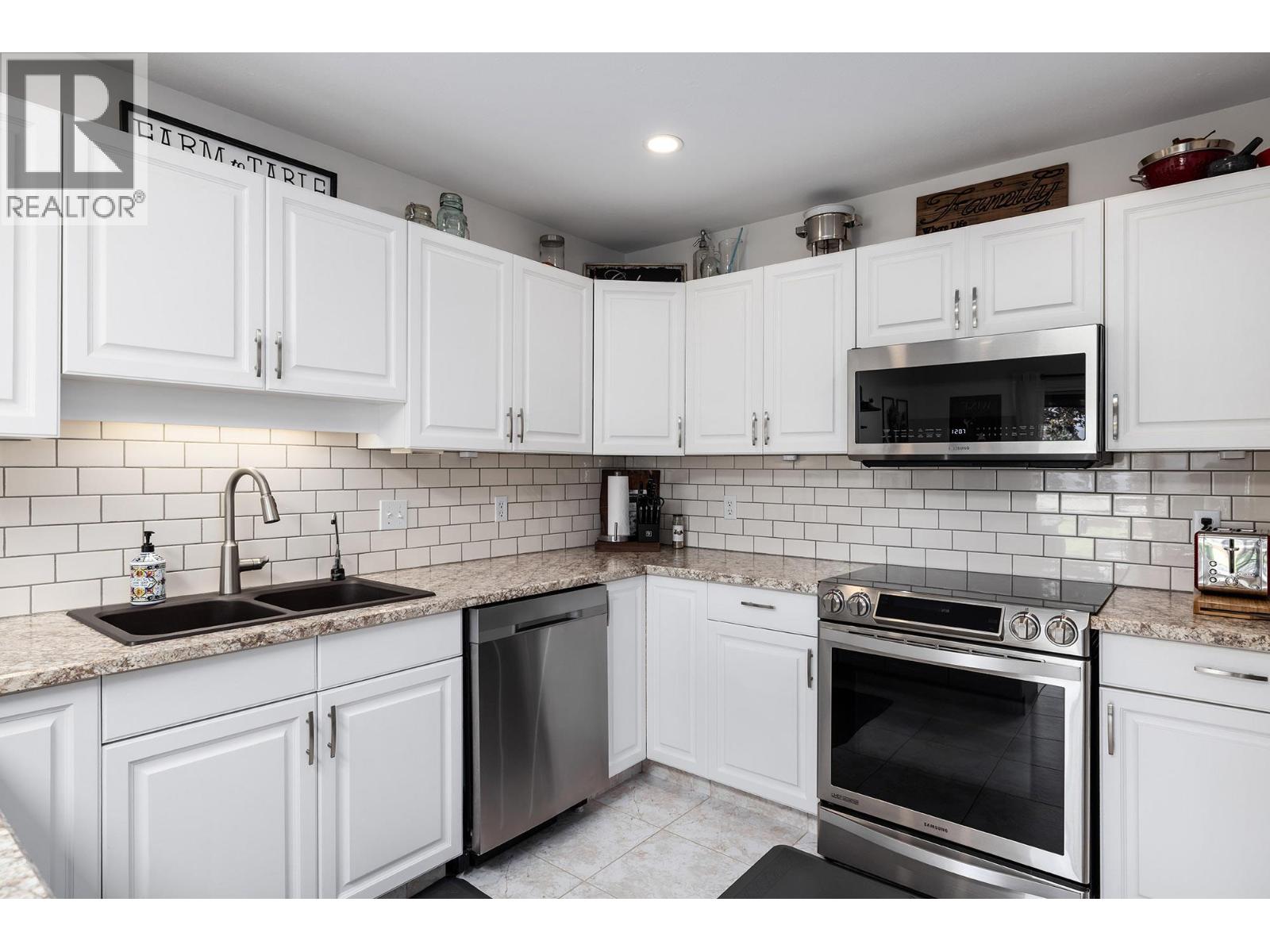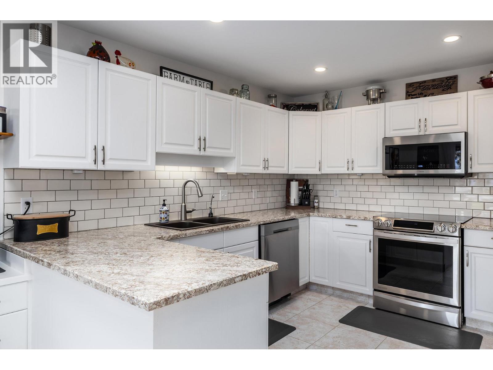 Immaculate FREEHOLD Bare Land Strata semi-detached duplex with Lake and Mountain Views and leisure gardens 55+. Fully renovated with 2 primary suites, featuring upgraded crown moldings, hardwood & vinyl flooring, and 3 skylights. The layout includes a spacious eat-in kitchen with SS appliances, roll-out cabinetry, and loads of storage. Enjoy the warmth of two gas fireplaces and ductless A/C. The strata covers heat, hot water & gas for fireplaces. Additional highlights are the extra large patio, garage, and proximity to amenities, including the beach and rec center. This property boasts shiplap details in all three bathrooms, radiant baseboard heat. Electricity only $56/month, Experience elegance and comfort in this gem. On;y one owner must be 55yrs+. (id:4069)